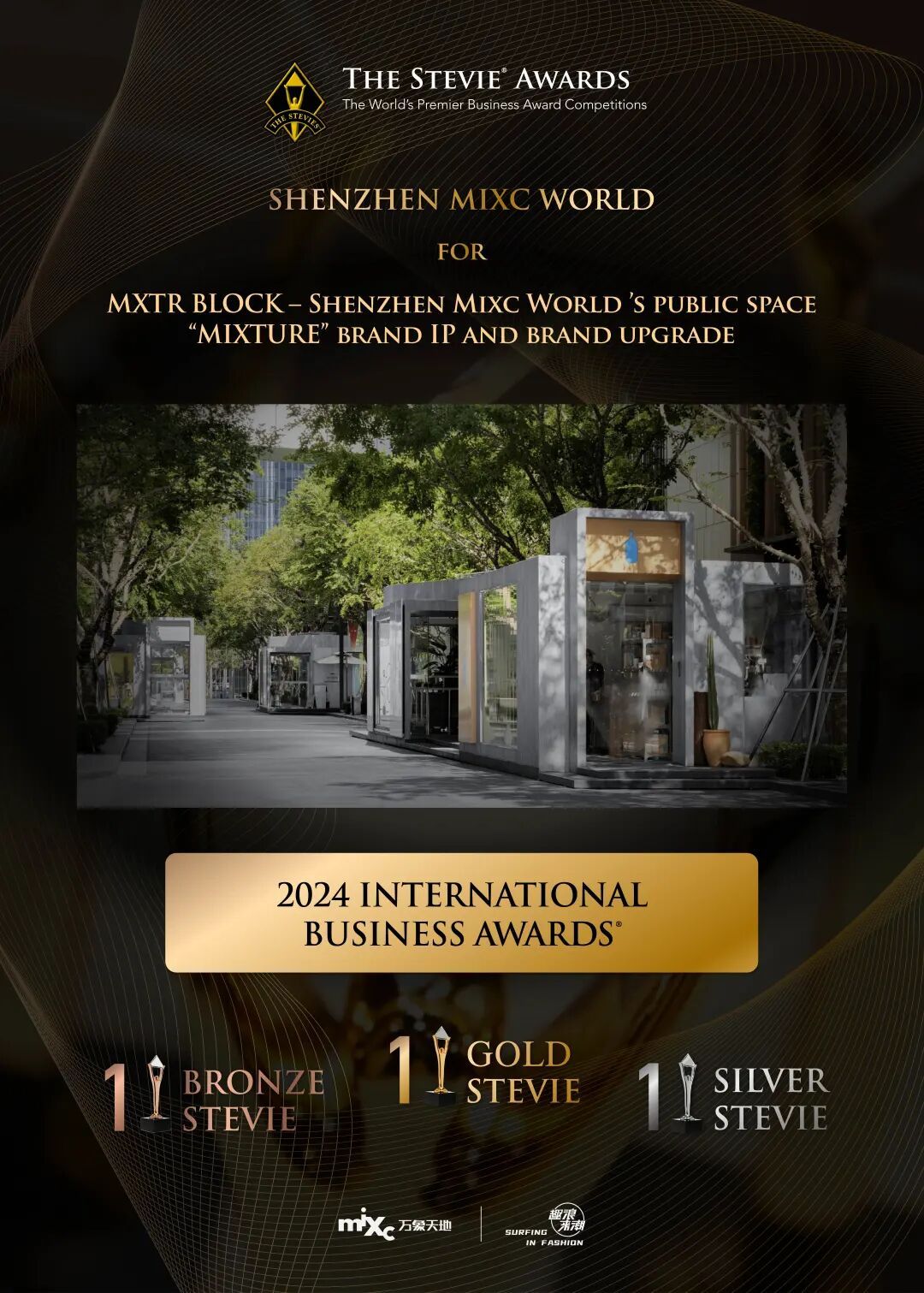 近年来,深圳万象天地凭借mxtr街区突出的街区活力及商业表现,不仅被广东省商务部评选广东省省级示范步行街商圈,同时,mxtr街区在国内外权威奖项-史蒂夫国际商业大奖评选中亦蝉联金奖殊荣。这些极具行业价值的奖项正是对深圳万象天地创新性的最高认可。
